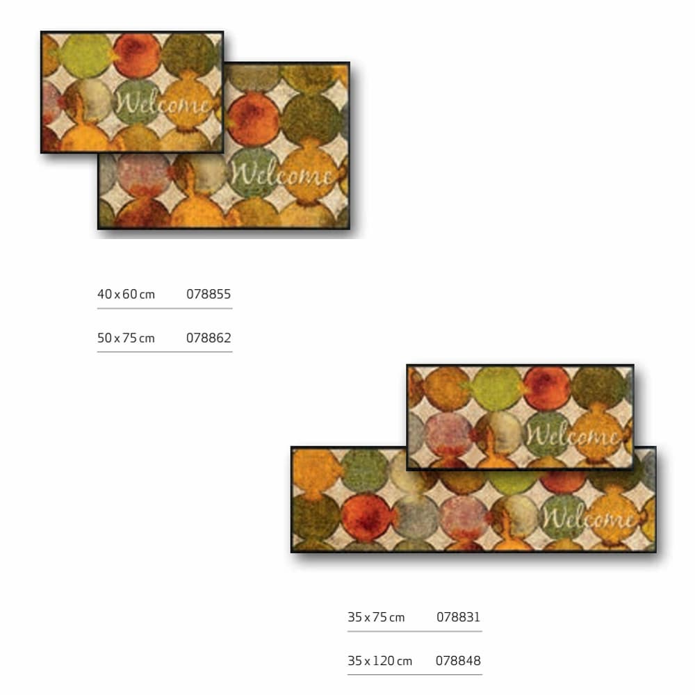 | Motif | Cercles colorés et message ‘Welcome’ |