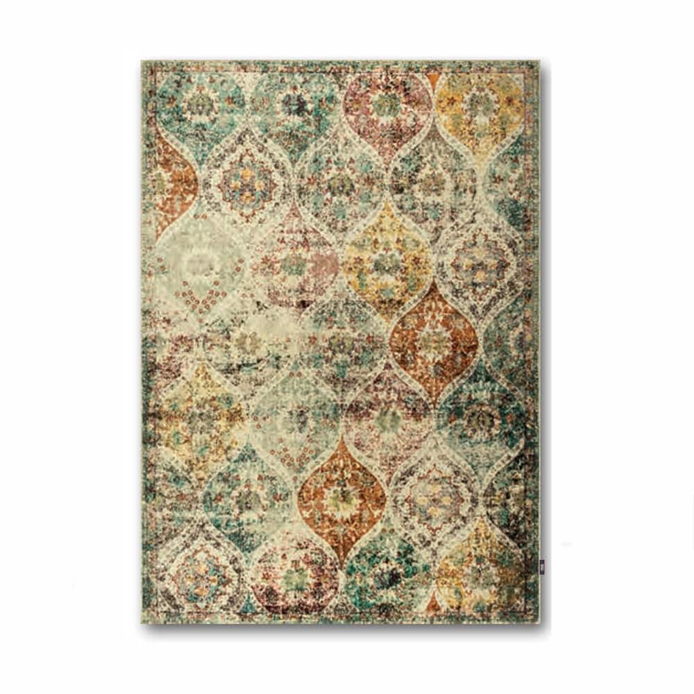 Placé en descente de lit ou au centre d’un dressing, ce tapis aux motifs médaillons structure l’espace avec une élégance discrète. Sa palette chromatique, mêlant des touches d’ocre et de turquoise délavé, s’accorde avec du mobilier en rotin ou des draps en lin lavé. Il suffit à la déco d’une chambre pour lui donner une âme voyageuse.